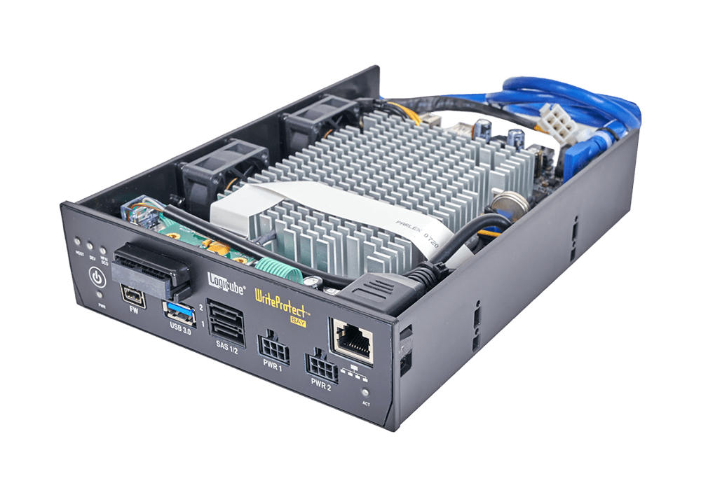 The WriteProtect™-BAY provides digital forensic professionals with fast, secure, read-only write-blocking of suspect hard drives. six interfaces, SAS/SATA/FireWire/PCIe/USB3/IDE are supported in a 5.25″, half-height design that fits into the drive bay of your forensic workstation. Logicube also offers a WriteProtect-PORTABLE or a WriteProtect-DESKTOP version of the product. Click for more information, WriteProtect-DESKTOP or WriteProtect-PORTABLE.