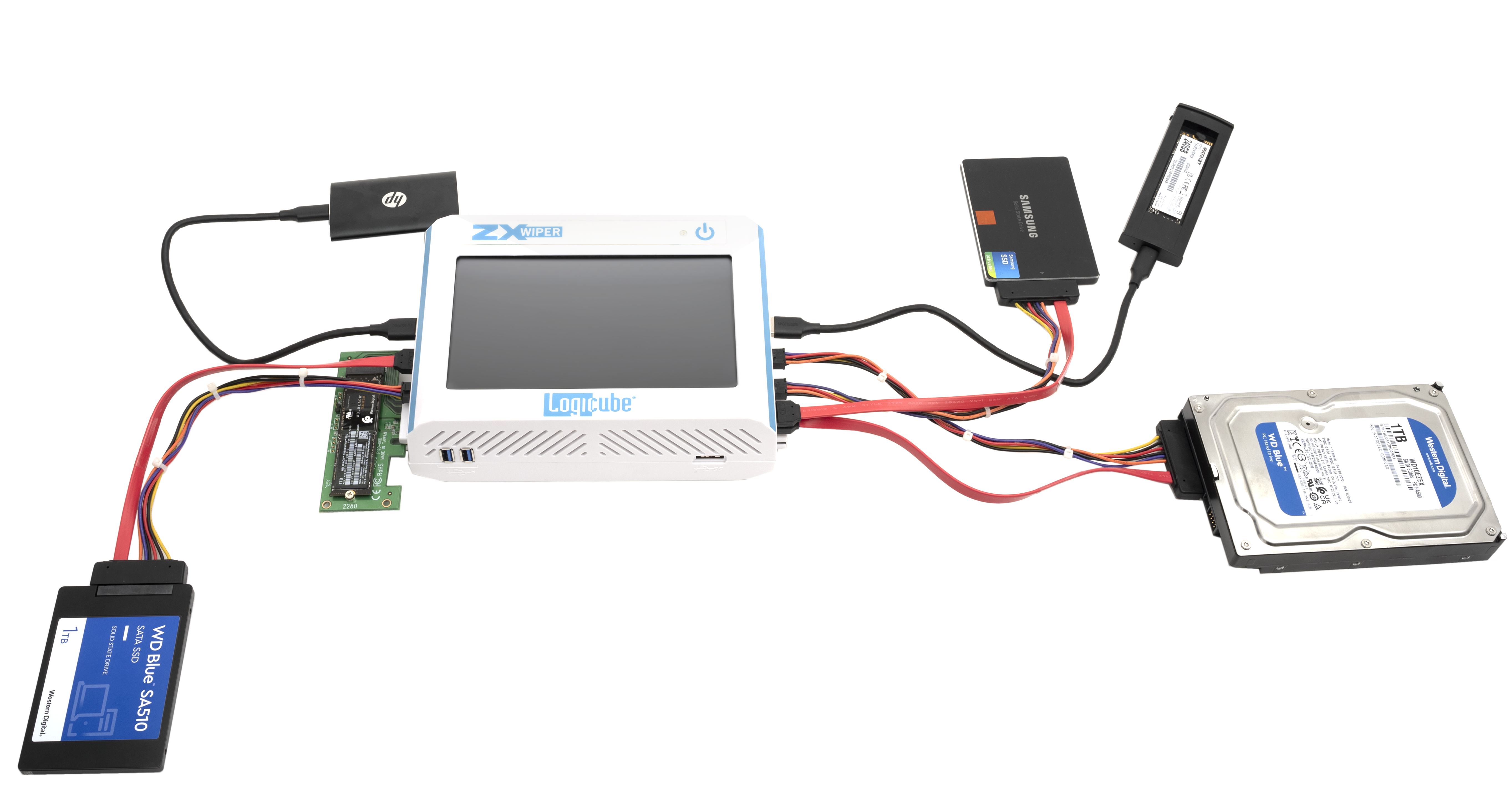 The ZX-Wiper is a High Speed, powerful, New-Generation Wiper, with speeds exceeding 60 GB/min in NVMe sanitization, equipped with 12 targets including SAS, SATA, USB, PCIe, FireWire & NVMe interfaces, supporting ITSP.40.006 v2 specifications and conforming to DoD 5220-M and NIST 800-88 guidelines.